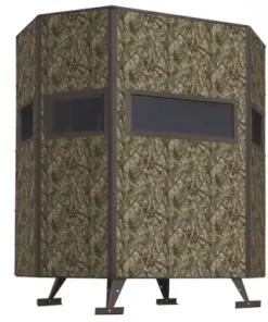 Featuring windows that open silently, seal tight, and contain scent, along with a rigid heavy-duty steel plate base for secure mounting, this blind offers convenience and peace of mind. The Pro Hunter variant comes fully assembled and includes essential accessories such as chairs, storage shelf, insulation, floor mat, bow hanger, camo curtains, gun rest, and anchor kit.